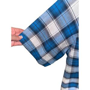 Ely Cattleman Men L Wrinkle Resistant Plaid Short Sleeve Western Shirt Blue/Whit