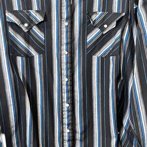 Ely Cattleman Mens Black/Blue Striped Western Shirt Snap-Front Long Sleeve XLT
