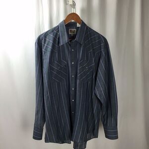 Ely Cattleman Men's Blue Green Stripped Button Front Shirt Size XL