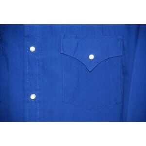 With bright blue with silver trim and classic pearl snaps this long sleeve button-up shirt offers comfortable wear while standing out from the crowd.