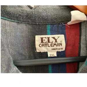Ely Cattleman Men's Flannel Shirt Size 2XL Gray Red Blue Button Down