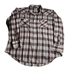 Ely Cattleman Men’s Western Pearl Snap Casual Shirt Size XXL Brown/Cream Plaid