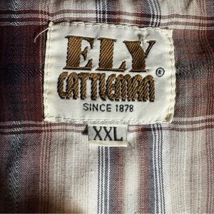Excellent preowned condition with little to no flaws. The shirt in the image is a Western-style pearl snap shirt, and the query "Ely Cattleman" refers to a brand known for authentic Western wear, including such shirts.