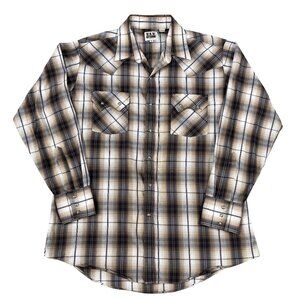 Ely Cattleman Pearl Snap Button Western Wear Shirt Sz Large