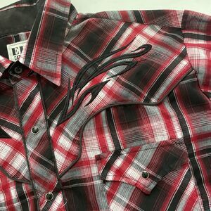 Ely Cattleman Pearl Snaps Cowboy Shirt Mens Large Plaid Tribal Embroidered Rodeo