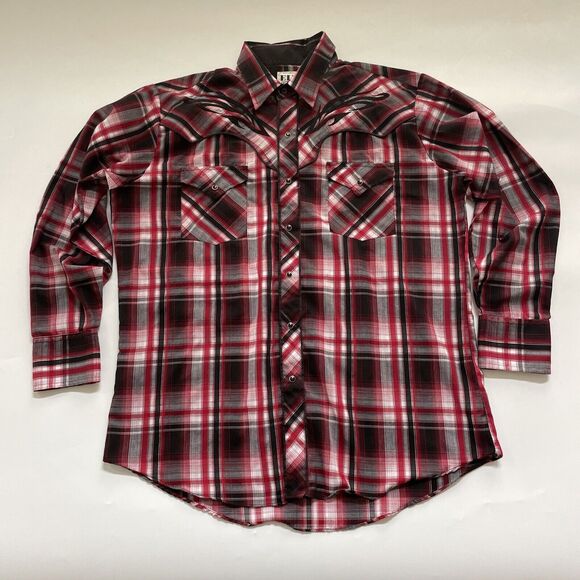 Ely Cattleman Pearl Snaps Cowboy Shirt Mens Large Plaid Tribal Embroidered Rodeo