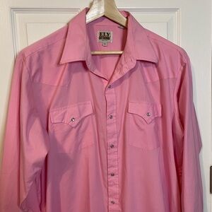 Ely Cattleman Pepto pink Western shirt w/ pearly snap buttons sz 17 1/2