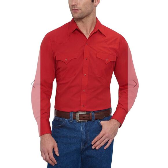 Ride in classic Western style with this Ely Cattleman Men’s Western Shirt in a bold red color with traditional pearl snap buttons. A must-have for rodeo nights, country concerts, or daily cowboy style.