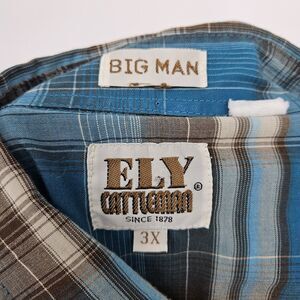 Ely Cattleman Shirt Mens 3X Blue Black Plaid Western Rodeo Big Man Short Sleeve. Good pre owned condition, please see all the pictures before buying.