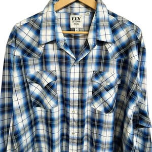 Ely Cattleman Shirt Mens 3XLT Tall Plaid Western Pearl Snap Button Rodeo
