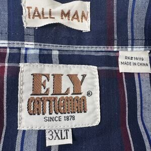 Ely Cattleman Shirt Men’s 3XLT XXXL Tall Blue Plaid Western Pearl Snap Button-Up