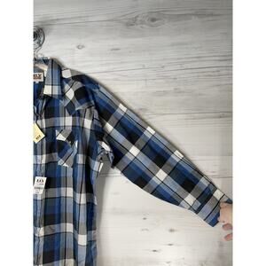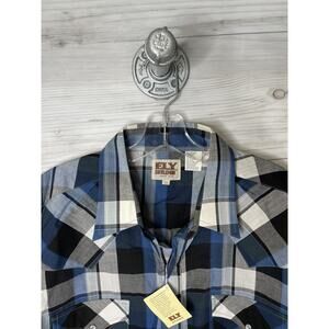 Ely Cattleman Shirt Mens XL Blue Black Plaid Western Pearl Snap Long Sleeve