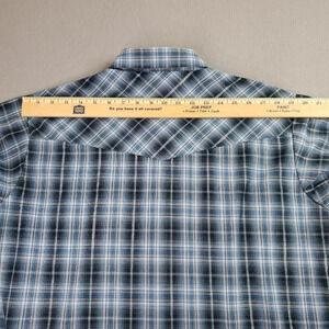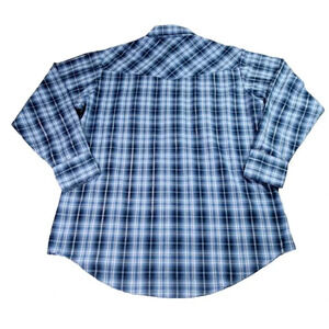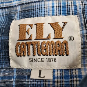 Ely Cattleman Western Shirt Large Blue Silver Plaid Pearl Cowboy Rodeo Dance
