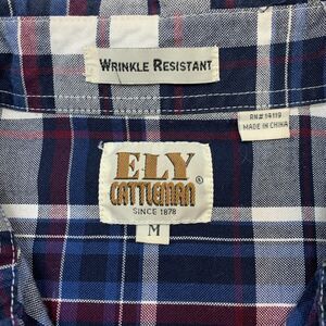 ELY CATTLEMAN WESTERN SHIRT MEN M MEDIUM NAVY BLUE PLAID LONG SLEEVE SNAP BUTTON