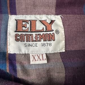 Ely Cattleman Western Shirt Men’s 2XL XXL Brown Blue Plaid Pearl Snap Button-Up