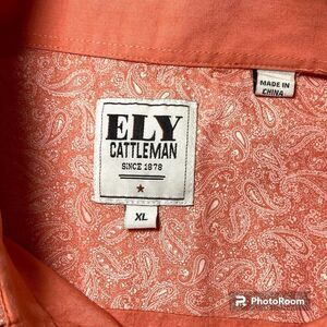 Get ready to add some western flair to your wardrobe with this Ely Cattleman pearl snap shirt in an orange shade! This button-up shirt in size XL features long sleeves and a snap closure for ease of wear. The shirt has a western theme and is perfect for casual occasions.