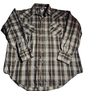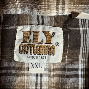 Ely Cattleman’s Men’s Western Shirt Sz XXL Brown Plaid Pearl Snaps Big & Tall