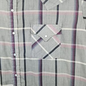 Ely Plains Men's XL Pearl Snap Short Sleeve Shirt Gray Windowpane WITH PINHOLES