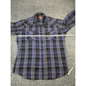 Ely Plains Shirt Men 17.5 Purple Pearl Snap Casual Plaid Cowboy Chore Rodeo
