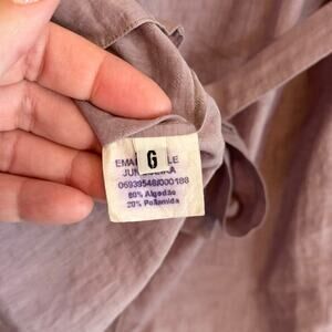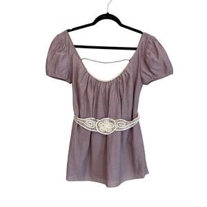 Emannuelle Junqueira Blouse Womens L Purple Scoop Neck Belted Puff Sleeve Formal