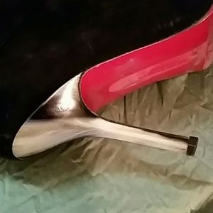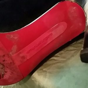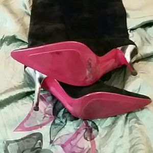 Amazing Italian Suade/Leather Tall Black Emanuel Lingaro Boots 3.5 Inch Heel is Black, White, Grayish in a marble colored Heel
