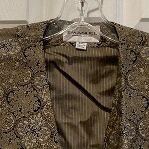 Emanuel Vest. Size Medium, gold, black inside a unique pattern.