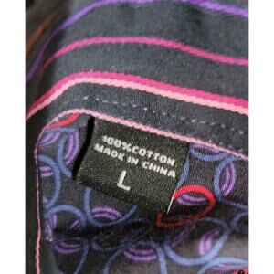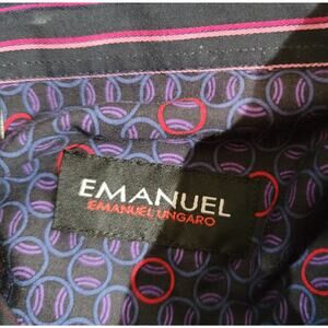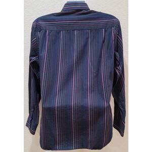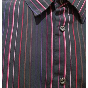 Emanuel Ungaro Black Pink Purple Striped Button Up Men's Shirt Large 100% Cotton