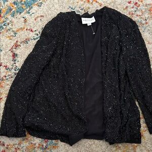 Elegant black cardigan with textured design. Ideal for sophisticated style.