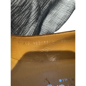 Condition: visible sole wear, uppers show light creasing but leather and buckle details remain in good condition. Priced to reflect sole wear and others minor flaws consistent with the age of the shoes; plenty of life left in the leather uppers and heels. Please review photos and ask questions if needed.