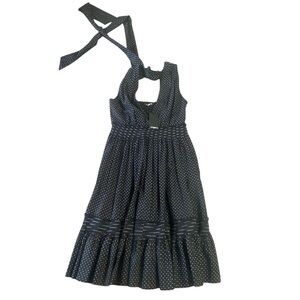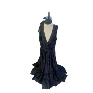 New with Tags.Stunning and sophisticated, this Emanuel Ungaro “Denise” dress blends timeless elegance with modern charm. Featuring a black base with delicate white polka dots, this sleeveless midi dress offers a flattering deep V-neckline, defined waistband, and ruffled hemline. Perfect for weddings, evening events, or upscale brunches. Original retail price: $695. Size Small. Style Code: US2D26. A luxurious designer piece for your collection!