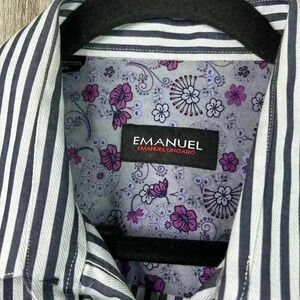 Emanuel Ungaro Men Button Down Shirt XL Striped Long Sleeves