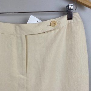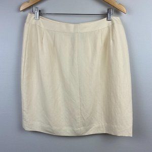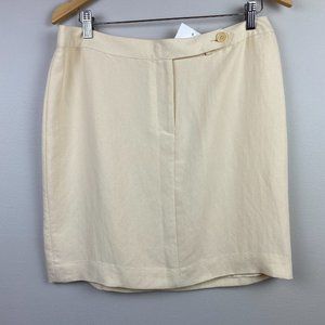 Emanuel Ungaro Pencil Skirt 12 Linen Blend Cream Above Knee Tabbed Waist Office Women's