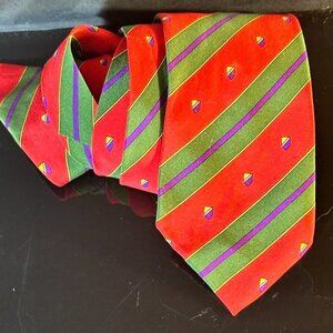 Thank you for looking at this Emanuel Ungaro Silk Tie Red Green striped Modernist Mans EuC Festive Vintage
