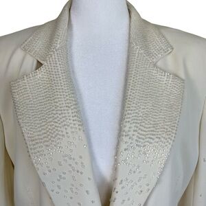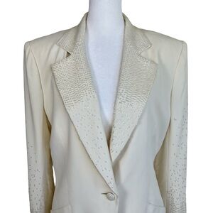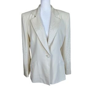 Emanuel Ungaro Vintage Beaded Blazer Ivory Silk-blend Elegant Glam Dressy Sz 12