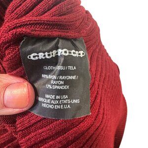 Experience the elegance of Emanuel Ungaro with this ribbed knit top tailored for women. Its blend of rayon and spandex offers a comfortable fit while maintaining its shape. The deep red hue adds a touch of sophistication, making it a versatile addition to any wardrobe.