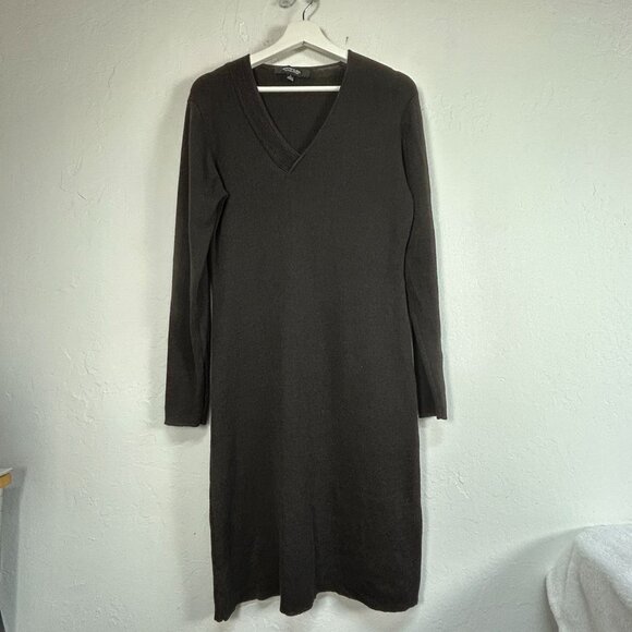 Emanuel Ungaro Womens Long Sleeve V-Neck Shift Dress Large Black Knit Pullover