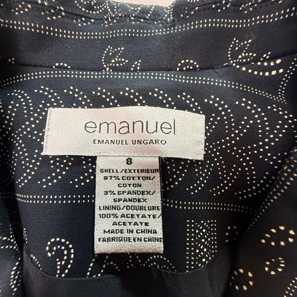 Emanuel Ungaro blazer, designer blazer women, patchwork print blazer, statement jacket, navy white blazer, women’s cotton spandex blazer, business casual blazer, structured blazer, professional office jacket, career wear blazer, size 8 blazer, long sleeve blazer, fully lined blazer, luxury designer jacket, vintage inspired blazer, workwear blazer, tailored women’s blazer, chic statement piece, dressy evening blazer, classic printed blazer