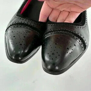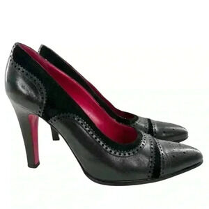 Emanuel Ungaro womens heels size 8.5 black Italian leather suede cap toe brogue career