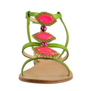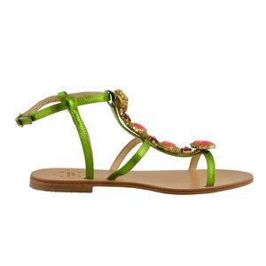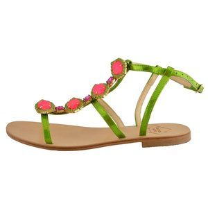 This is authentic Emanuela Caruso "Capri" Women's Stones Decorated Flat Sandals Shoes