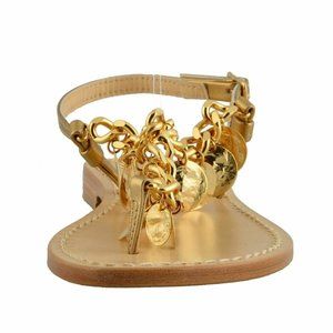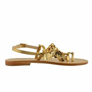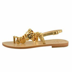 EMANUELA CARUSO "CAPRI" WOMEN'S GOLDEN FLAT SANDALS SHOES SIZE 5 6 9 10