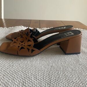 Emanuele Crasto Cognac Italian Leather Cutout Slides Block Heel 2.5” Size EU 41
