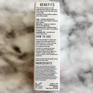 This soothing and corrective under eye serum will reshape your view on eye care with natural oils that will result in a more youthful and radiant look. Contains therapeutic Aloe, Spirulina, Geranium Oil and Lavender Oil. Aloe relieves redness and puffy eyes. Also helps to reduce dark circles. Spirulina helps to maintain youth and elasticity. Geranium Oil tightens facial skin and slows down the effects of aging. Lavender Oil nourish and minimizes lines. Same day shipping. New in box.