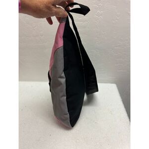 Features: Single strap, Front mesh pocket, Zip closures, Gray and pink color, Adjustable strap, Compact design
