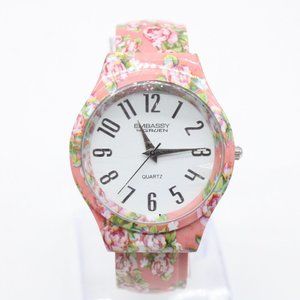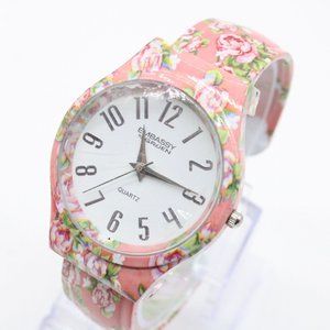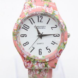 Embassy By Gruen Watch Womens Pink Tone Stainless Steel Cuff Style White Dial