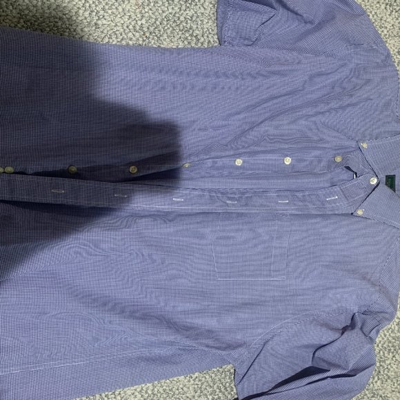 Mens Blue and White Checked button down shirt. Size 17 and 32/33.