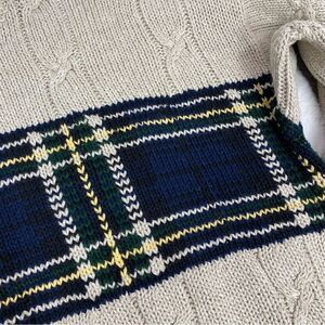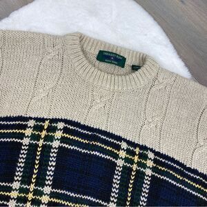 Embassy Row Hand Knit Vintage Multi Knit Plaid Block Sweater Tan Large