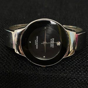 Embassy by GRUEN Diamond Silver Toned Quartz Watch Cuff Bracelet