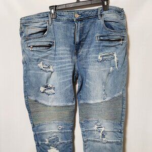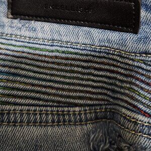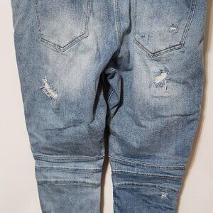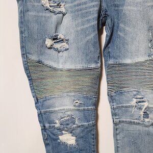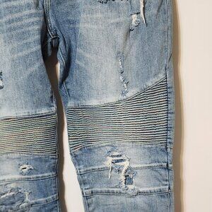 Embellish Mens Moto Biker Denim Skinny Jeans Distressed Blue Paint SIZE: 44