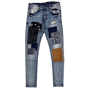 Embellish NYC Men's Rip & Repair Patchwork Distressed Skinny Fit Denim Jeans