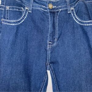 Embellished Back Pockets BAMBOO Dark Indigo Wash Flare Jeans